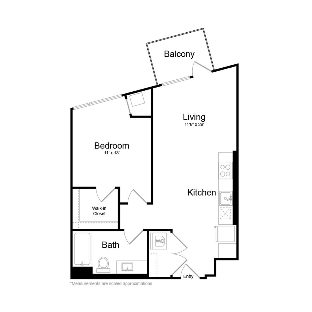 Enjoy one of our apartment homes at the Vancouver Waterfront featuring durable wood-tone flooring, quartz counter tops and stainless-steel appliances. This home features a walk-in closet and balcony with a view of the Columbia River from your home.