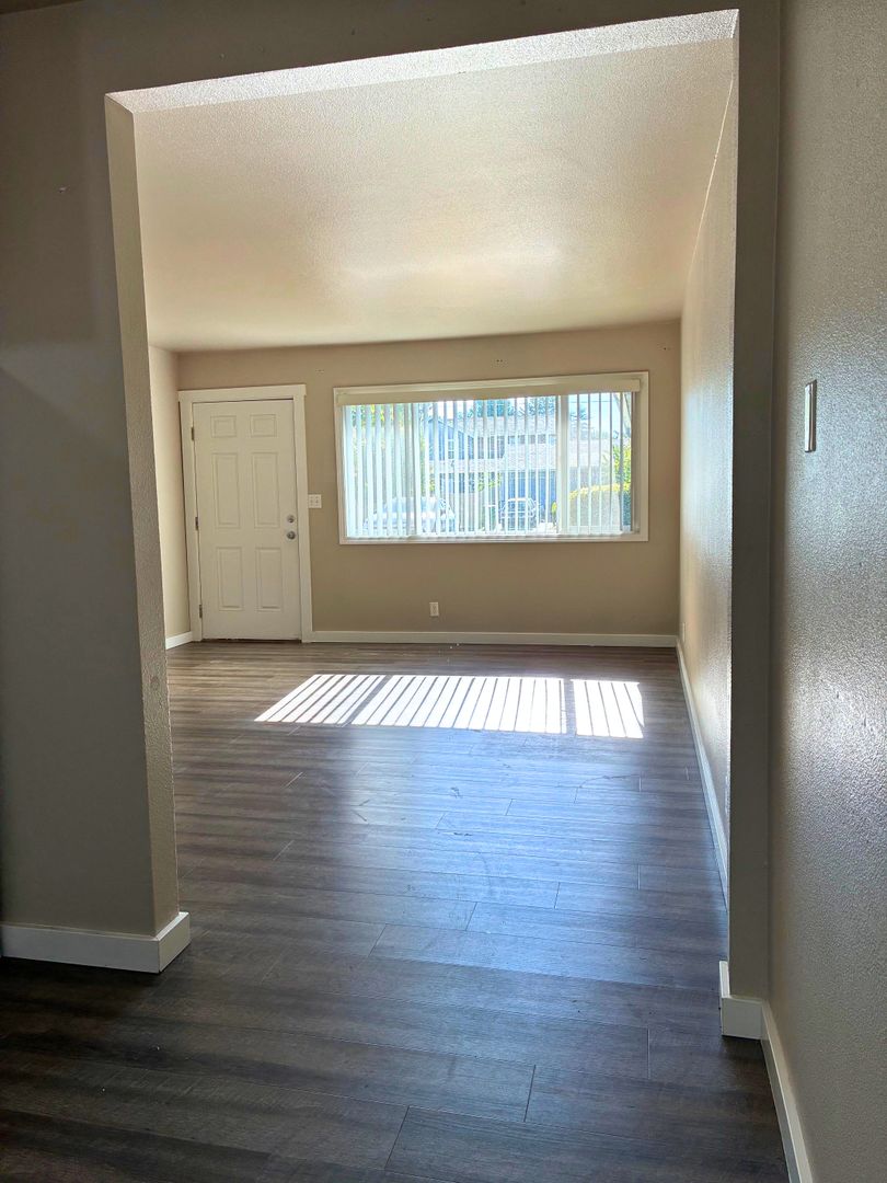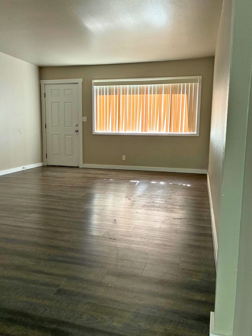 This charming 6 Plex community has a 2 bedroom 1.0 bathroom apartment is available now. As you enter you are met with beautiful laminate floors that are featured through out the living room, dining room and kitchen area. Kitchen is updated with newer appliances. Bedrooms feature carpet. Patio area off of kitchen.